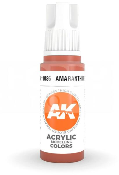 AK-Interactive - Acrylics 3rd generation Amaranth Red 17ml - akrilfesték AK11086 Új formulával készült kiváló minőségű akrilfesték modellezéshez-makettezéshez. Új összetevőinek köszönhetően a festék szerkezete nem esik szét, ezzel elkerülhetjük a termék állása utáni hosszadalmas felrázási folyamatot. Kiválóan alkalmas ecsettel és airbrush-al történő alkalmazásra is, utóbbi esetében megfelelő hígítással(lehetőleg saját hígítójával). Az új AK-Interactive 3. generációs akrilfesték formula 2X jobb tapadási tulajdonsággal van felvértezve. Száradás után ellenállóak, kiválóan koszolhatóak akár akril akár enamel (olajbázisú) termékekkel is. Előnyök: