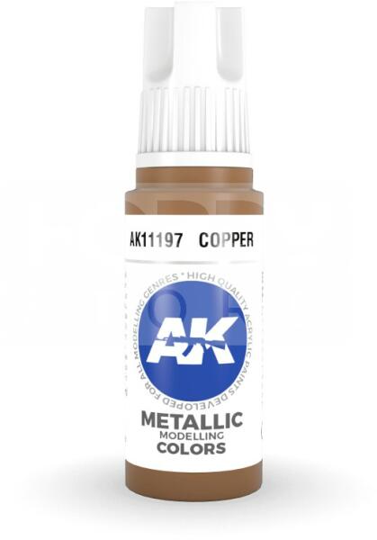 AK-Interactive - Acrylics 3rd generation Copper 17ml - akrilfesték AK11197 Új formulával készült kiváló minőségű akrilfesték modellezéshez-makettezéshez. Új összetevőinek köszönhetően a festék szerkezete nem esik szét, ezzel elkerülhetjük a termék állása utáni hosszadalmas felrázási folyamatot. Kiválóan alkalmas ecsettel és airbrush-al történő alkalmazásra is, utóbbi esetében megfelelő hígítással(lehetőleg saját hígítójával). Az új AK-Interactive 3. generációs akrilfesték formula 2X jobb tapadási tulajdonsággal van felvértezve. Száradás után ellenállóak, kiválóan koszolhatóak akár akril akár enamel (olajbázisú) termékekkel is. Előnyök: