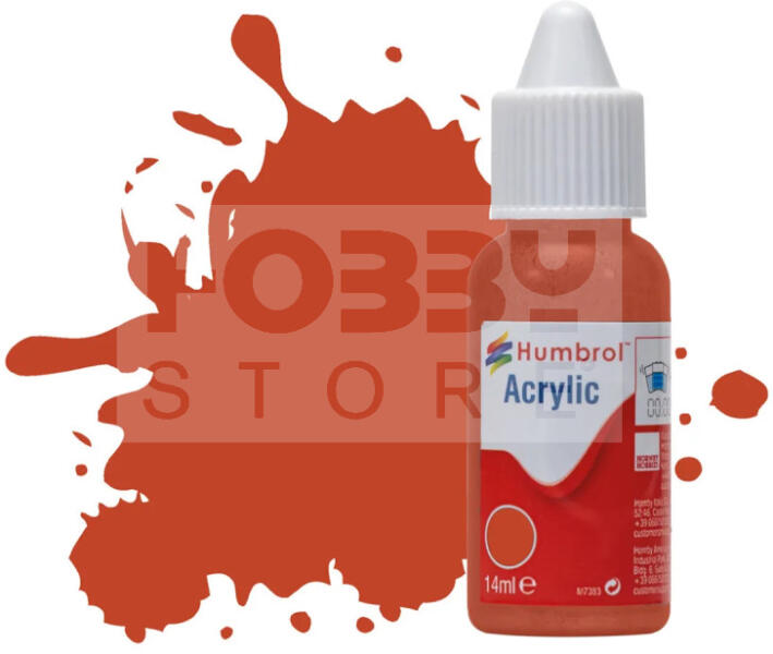 Humbrol No 100 Red Brown - Matt - 14ml akrilfesték DB0100 A Humbrol neve nagy népszerűségnek örvend a modellezők és makettezők körében. Minősége évszádos múltra tekint vissza, különösképpen kiváló olajfestékeik terén. Termékeik között továbbá széles színskálájú akrilfestékek is vannak, illetve a modellezéshez szükséges kiegészítőket is megtalálhatjuk; ecseteket, hígítókat, tisztítókat, fogókat, maszkolókat és festék palettákat. A Humbrol olajfestéketek a makettezésen kívül alkalmasak különböző felületek festésére is, kreatív célokra is alkalmazható. Ugyanakkor elsősorban a modellezők körében ismert a neve magas minősége és rengeteg színárnyalata végett. A több mint 80 színt magában foglaló termékcsaládban egyaránt megtalálható matt, fényes, metálos és félfényes száradású festékek is. Alkalmazható a legtöbb műanyag, fa, üveg, kerámia, fém, karton, farostlemez felületre. Javasolt egy apró felületre felvinni először a festéket, ezzel tesztelve, hogy milyen lesz a felületen a végeredmény. Felhasználásához ecsetet javasolunk. 24 óra alatt szárad meg teljesen. A Humbrol akrilfestékek ugyancsak magas minőségnek örvendenek, mint oldószeres társaik. Kifejezetten műanyag modellekre lett kifejlesztve gyors száradással, de felhasználása nem ér ezzel végett. Alkalmazható a legtöbb műanyag, fa, üveg, kerámia, fém, karton, farostlemez felületre. 1-2 óra száradási idő jellemzi. Ecsettel és airbrussal is felvihető, utóbbi csak hígítás után alkalmazható. Matt, fényes, és metálos száradású festékek is megtalálhatók közöttük. Kiszerelés: 14 ml Gyártó: Humbrol