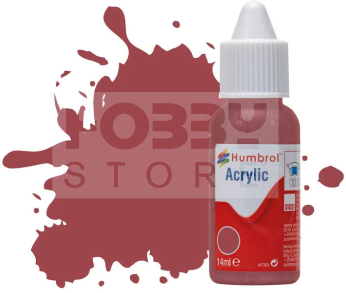 Humbrol No 73 Wine - Matt - 14ml akrilfesték DB0073 A Humbrol neve nagy népszerűségnek örvend a modellezők és makettezők körében. Minősége évszádos múltra tekint vissza, különösképpen kiváló olajfestékeik terén. Termékeik között továbbá széles színskálájú akrilfestékek is vannak, illetve a modellezéshez szükséges kiegészítőket is megtalálhatjuk; ecseteket, hígítókat, tisztítókat, fogókat, maszkolókat és festék palettákat. A Humbrol olajfestéketek a makettezésen kívül alkalmasak különböző felületek festésére is, kreatív célokra is alkalmazható. Ugyanakkor elsősorban a modellezők körében ismert a neve magas minősége és rengeteg színárnyalata végett. A több mint 80 színt magában foglaló termékcsaládban egyaránt megtalálható matt, fényes, metálos és félfényes száradású festékek is. Alkalmazható a legtöbb műanyag, fa, üveg, kerámia, fém, karton, farostlemez felületre. Javasolt egy apró felületre felvinni először a festéket, ezzel tesztelve, hogy milyen lesz a felületen a végeredmény. Felhasználásához ecsetet javasolunk. 24 óra alatt szárad meg teljesen. A Humbrol akrilfestékek ugyancsak magas minőségnek örvendenek, mint oldószeres társaik. Kifejezetten műanyag modellekre lett kifejlesztve gyors száradással, de felhasználása nem ér ezzel végett. Alkalmazható a legtöbb műanyag, fa, üveg, kerámia, fém, karton, farostlemez felületre. 1-2 óra száradási idő jellemzi. Ecsettel és airbrussal is felvihető, utóbbi csak hígítás után alkalmazható. Matt, fényes, és metálos száradású festékek is megtalálhatók közöttük. Kiszerelés: 14 ml Gyártó: Humbrol