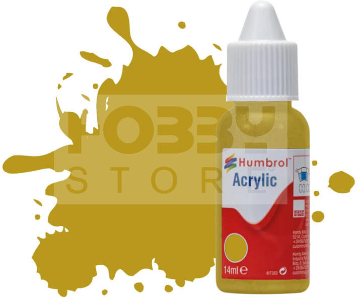 Humbrol No 83 Ochre - Matt - 14ml akrilfesték DB0083 A Humbrol neve nagy népszerűségnek örvend a modellezők és makettezők körében. Minősége évszádos múltra tekint vissza, különösképpen kiváló olajfestékeik terén. Termékeik között továbbá széles színskálájú akrilfestékek is vannak, illetve a modellezéshez szükséges kiegészítőket is megtalálhatjuk; ecseteket, hígítókat, tisztítókat, fogókat, maszkolókat és festék palettákat. A Humbrol olajfestéketek a makettezésen kívül alkalmasak különböző felületek festésére is, kreatív célokra is alkalmazható. Ugyanakkor elsősorban a modellezők körében ismert a neve magas minősége és rengeteg színárnyalata végett. A több mint 80 színt magában foglaló termékcsaládban egyaránt megtalálható matt, fényes, metálos és félfényes száradású festékek is. Alkalmazható a legtöbb műanyag, fa, üveg, kerámia, fém, karton, farostlemez felületre. Javasolt egy apró felületre felvinni először a festéket, ezzel tesztelve, hogy milyen lesz a felületen a végeredmény. Felhasználásához ecsetet javasolunk. 24 óra alatt szárad meg teljesen. A Humbrol akrilfestékek ugyancsak magas minőségnek örvendenek, mint oldószeres társaik. Kifejezetten műanyag modellekre lett kifejlesztve gyors száradással, de felhasználása nem ér ezzel végett. Alkalmazható a legtöbb műanyag, fa, üveg, kerámia, fém, karton, farostlemez felületre. 1-2 óra száradási idő jellemzi. Ecsettel és airbrussal is felvihető, utóbbi csak hígítás után alkalmazható. Matt, fényes, és metálos száradású festékek is megtalálhatók közöttük. Kiszerelés: 14 ml Gyártó: Humbrol