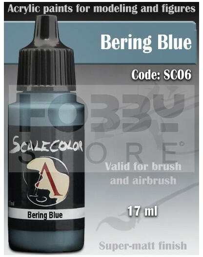 Scale75 - SCALECOLOR Range - BERING BLUE akrilfesték 17ml SC-06 Akrilfesték modellezőknek és wargamesek számára. Magas pigment tartalmú rendkívül jól fedő és használahtó ultra mattra száradó festék. A Scale75 Scalecolor széria elsősorban figura festők és társasjáték figura festők számára készült. A 63 színből álló paletta rendkívül élénk színeivel nagyszerű végeredményeket érhetünk el figuráinkon. A termék felrázás után azonal használható ecsettel, további hígítás után pedig aribrush-al. Előnyök: