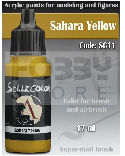 Scale75 - SCALECOLOR Range - SAHARA YELLOW akrilfesték 17ml SC-11 Akrilfesték modellezőknek és wargamesek számára. Magas pigment tartalmú rendkívül jól fedő és használahtó ultra mattra száradó festék. A Scale75 Scalecolor széria elsősorban figura festők és társasjáték figura festők számára készült. A 63 színből álló paletta rendkívül élénk színeivel nagyszerű végeredményeket érhetünk el figuráinkon. A termék felrázás után azonal használható ecsettel, további hígítás után pedig aribrush-al. Előnyök:
